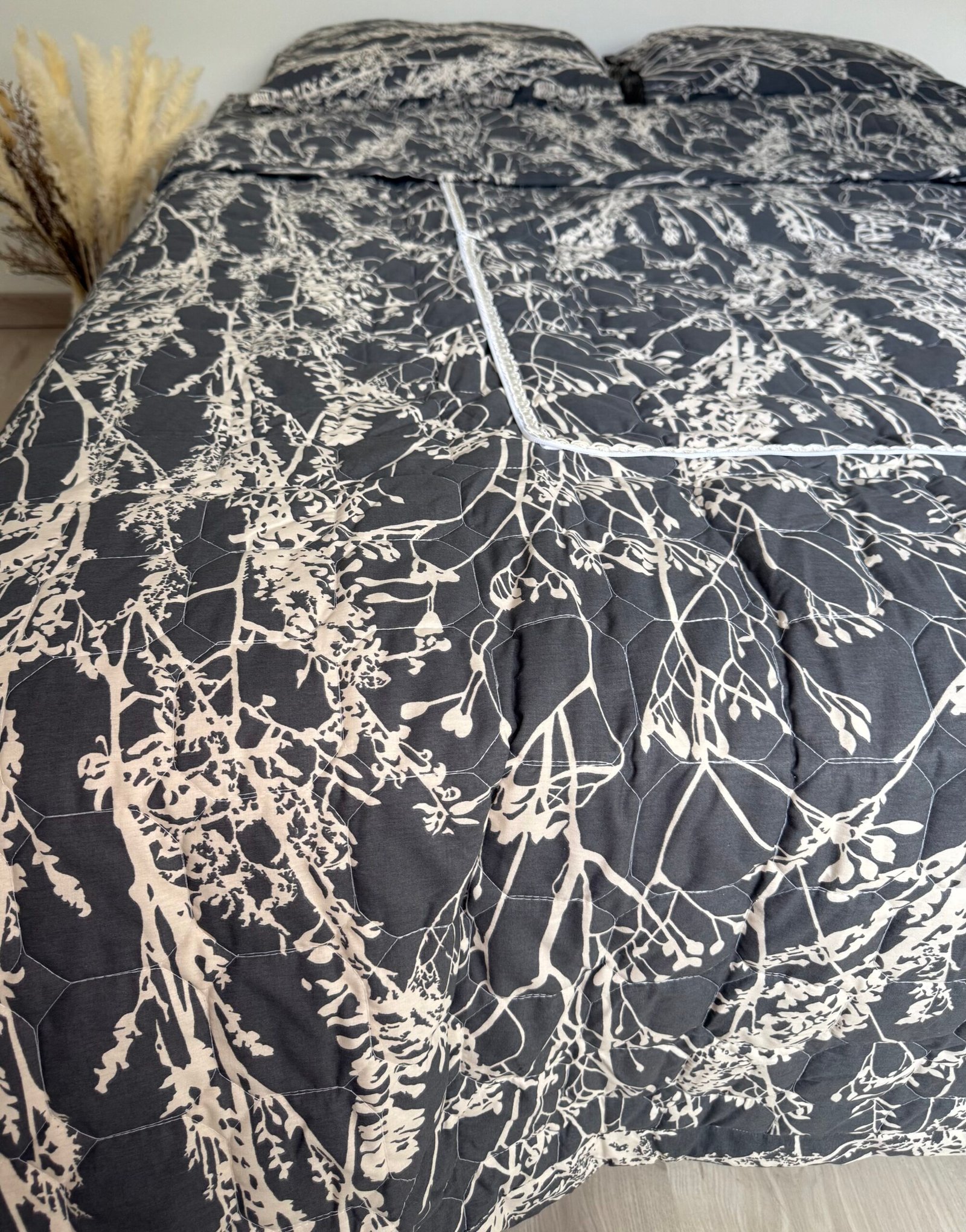 Le couvre-lit est composé d’une fermeture éclaire à l’avant pour pouvoir se replier et se fermer en forme d’oreiller.