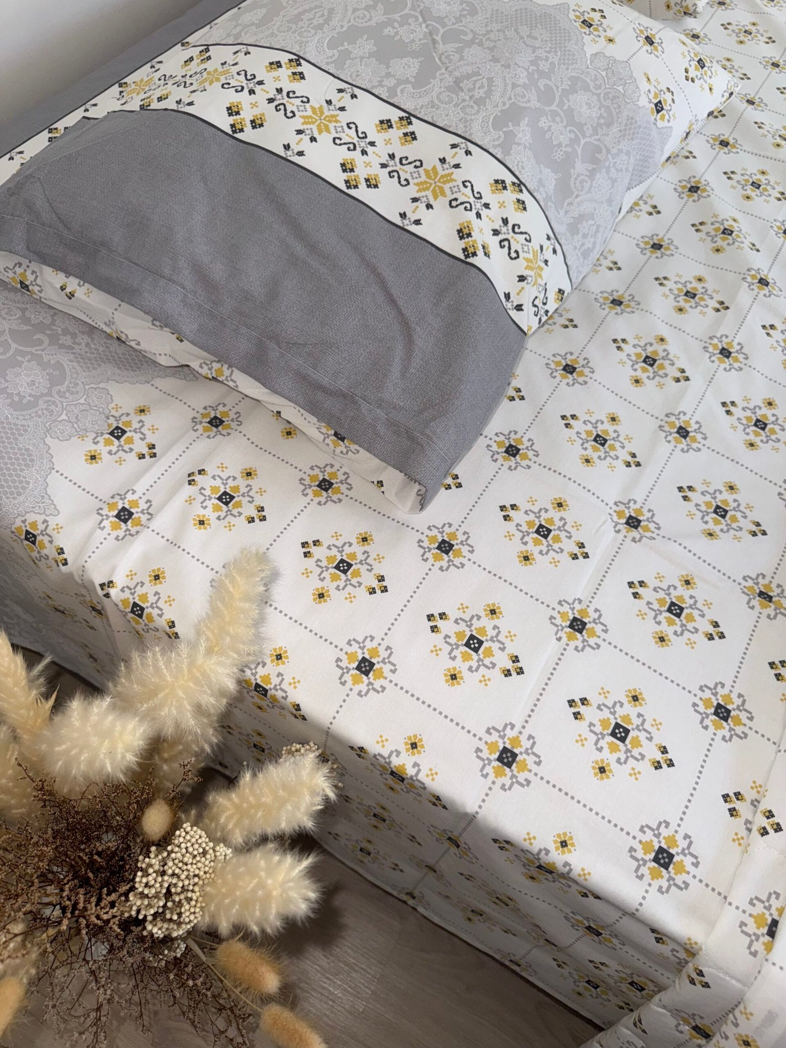 Le couvre-lit est composé d’une fermeture éclaire à l’avant pour pouvoir se replier et se fermer en forme d’oreiller.