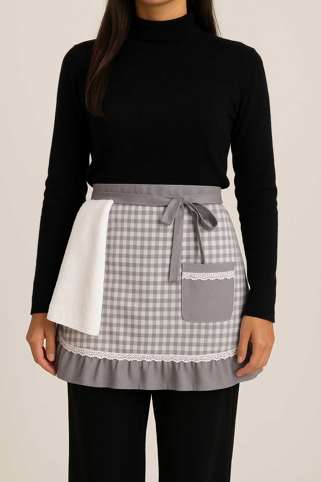 Tablier Court en Coton avec Serviette Intégrée – Fait Main